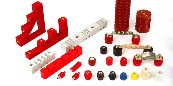 成形材料主要為BMC(Bough Moulding Compound)/ DMC(Dough Moulding Compound)不飽和樹脂。客戶可以根據自身對絕緣柱的絕緣,機械及電性能指標要求制定使用普通或加強型材料,UL材料。